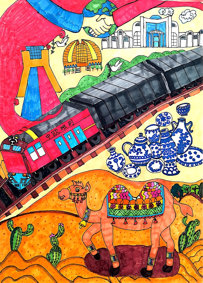 《丝路焕彩》(作者:新疆和田地区和田县第三小学六年级一班 柏景天;辅导教师:颜春丽)
