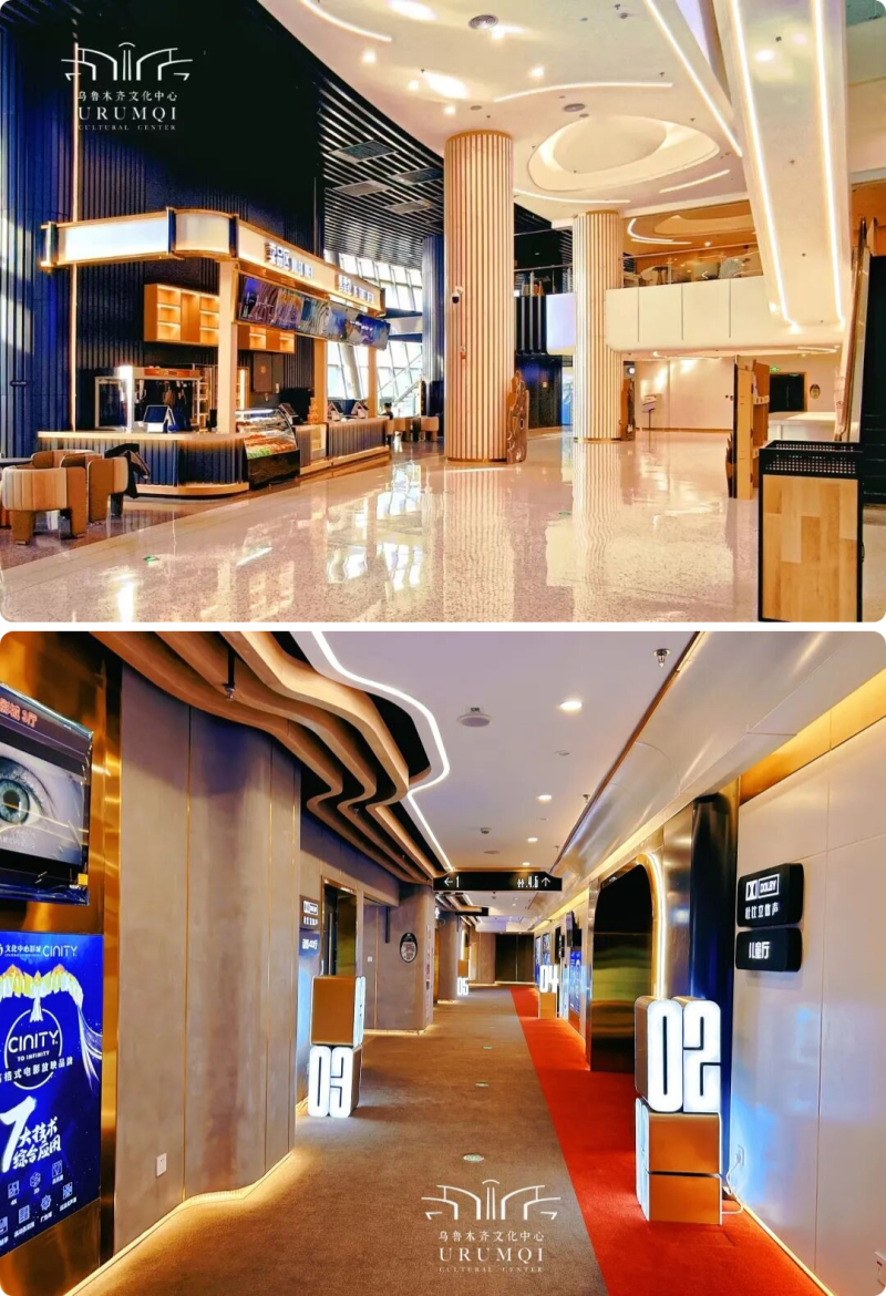 文化中心影城位于乌鲁木齐文化中心文化馆4至5层,是全疆首家双CINITY巨幕影城。影城面积约1.23万平方米,拥有11个专业放映厅,共设有1218个座位。CINITY融合七大最新技术,以其卓越的画质和音效,使观影体验达到新高度,开启崭新影像世界。