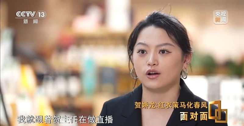 贺娇龙:老百姓嘲笑过我,你还带货呢,看你那几个粉丝,这个话是很扎心的,要强的我,不接受这个结果。平时工作又比较忙,那怎么办,为了不影响工作,我就每天早晨6时30分起来,7时开始直播,播到9时30分刚好两个半小时,我就去上班。这样持续了半年,我积累了50万粉丝。