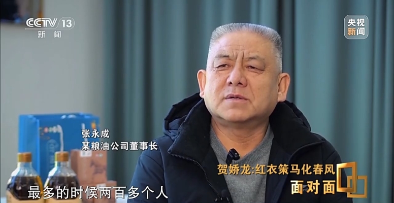 某粮油公司董事长 张永成:直播的时候,群里面就五六十个人,最多的时候两百多个人。她就那样子天天在播。她胃又不好,天天哭鼻子,哭完鼻子擦完眼泪就继续播。她每天还要去播,一播五六个小时,没有停。还要拍短视频。