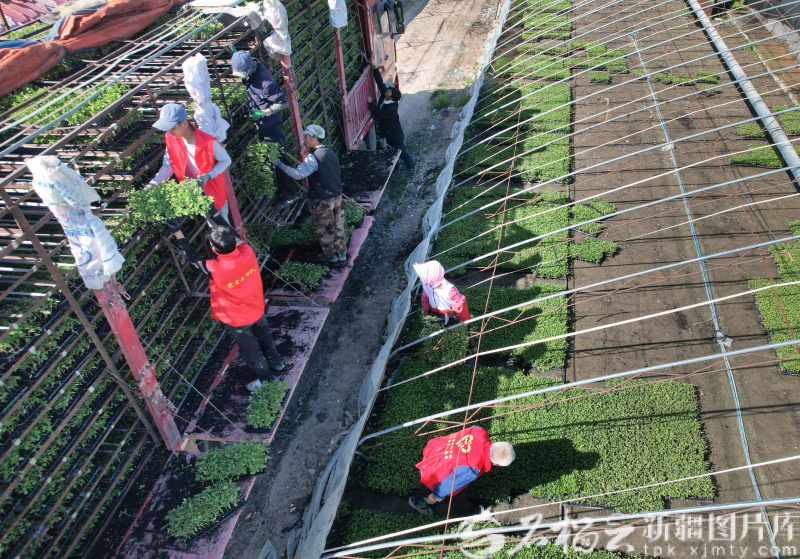 4月23日,在甘河子镇包家庄子村卓丰种植农民专业合作社,党员先锋队成员主动靠前,帮助农户转运番茄菜苗,以实际行动服务春耕生产。 李仁锡摄