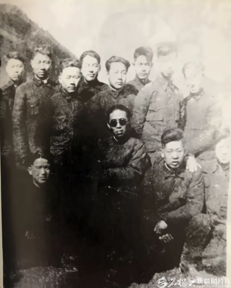 1939年茅盾(前排中间)和新疆学院的学生在一起。资料图