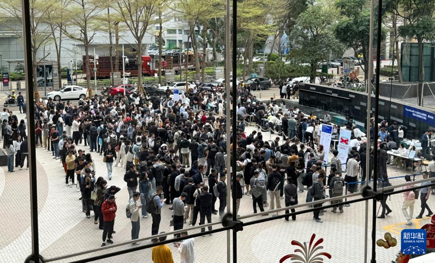 人们在深圳某互联网企业大厦楼下排队等待安装“龙虾”。来源:新华社