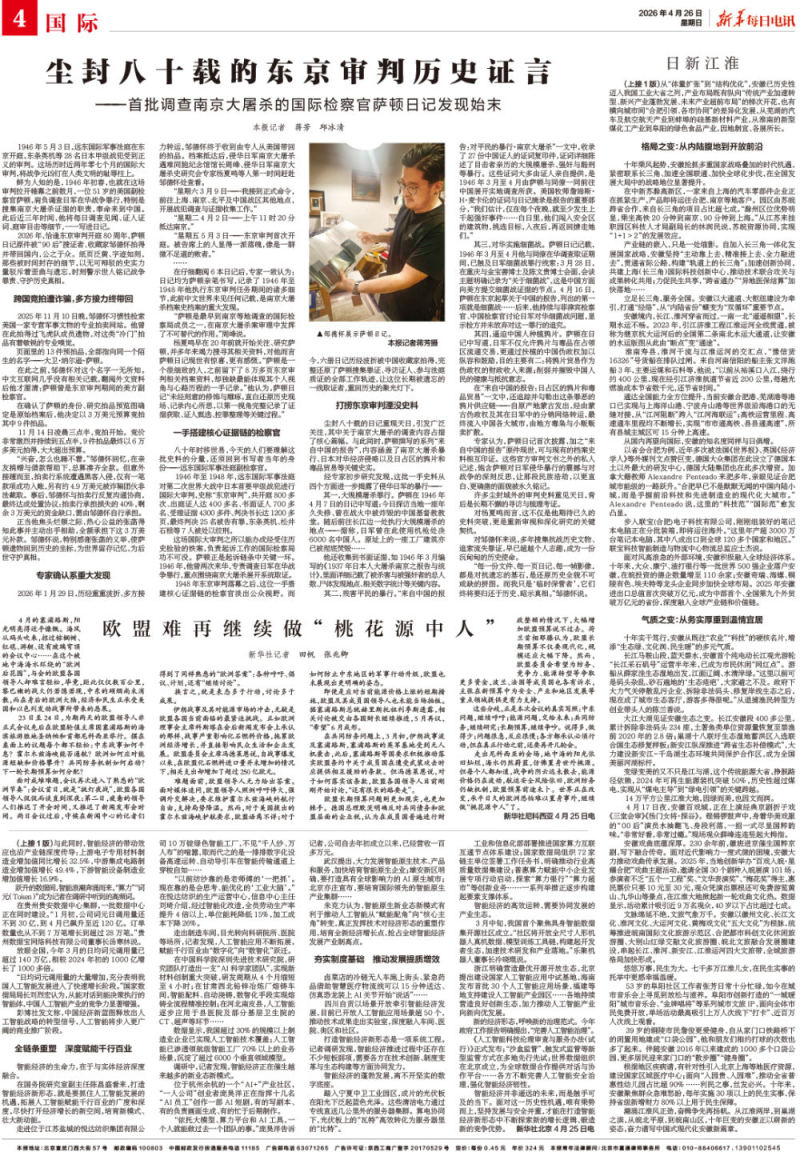 专家认为,萨顿日记首次披露,加之“来自中国的报告”原件现世,可与现有的档案史料相互印证。这些官方审判文书之外的私人记述,饱含萨顿对日军侵华暴行的震撼与对战争的深刻反思,让那段民族浩劫,以更直白、更确凿的面貌被永久铭记。
