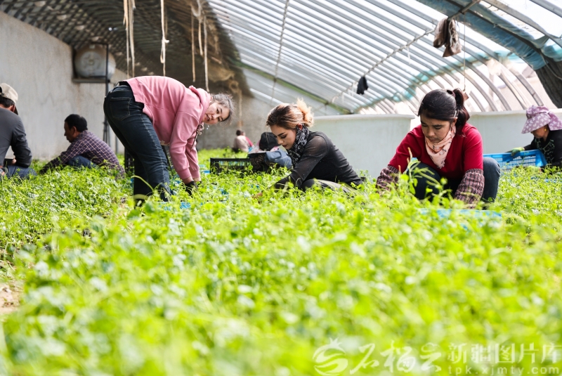 3月16日,新疆徽岳记生物科技有限公司瓜蒌育苗基地里,员工按标准筛选茎根。努尔古再丽 摄