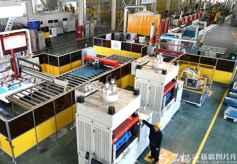 4月13日,工作人员在共享工厂内操控智能化设备作业。位于乌鲁木齐经济技术开发区(头屯河区)两河高端制造科技产业园的共享工厂,破解了装备制造业重资产投入高的痛点,目前已吸引30多家整车、改装车企业落地园区。石榴云/新疆日报记者 邹懿摄