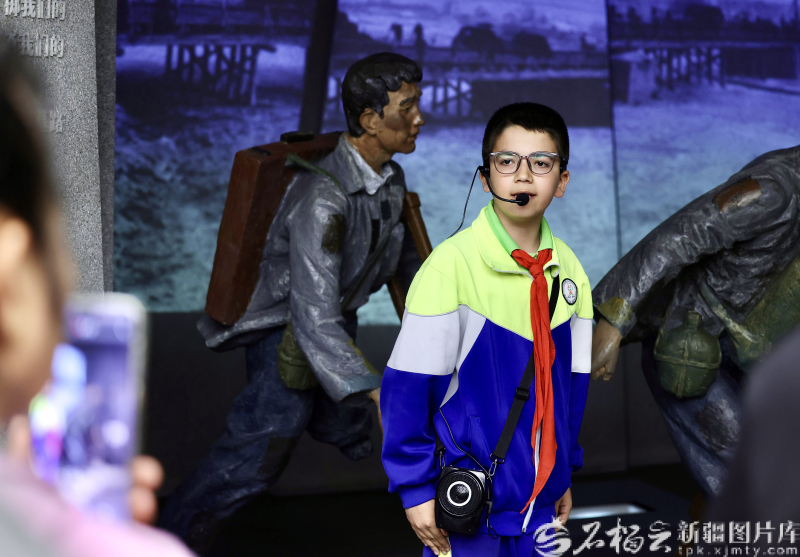 4月14日,小小讲解员讲述文物背后的英雄故事。当日,乌鲁木齐市天山区文化体育和旅游局(区文物局)在八路军驻新疆办事处纪念馆举行“文物映初心・少年讲英雄”文物大讲堂活动。乌鲁木齐市第43小学学生、社区代表等齐聚一堂,共赴一场红色文化之旅。 石榴云/新疆日报记者 李瑞摄
